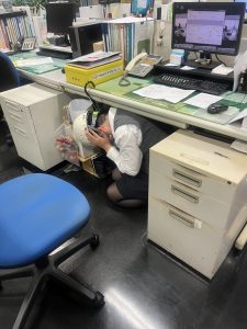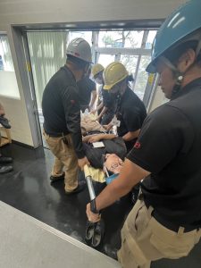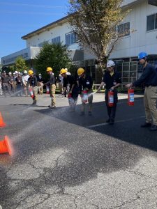 防災訓練実施 2025.10.07 9月30日、年に一度の防災訓練を実施しました。 地震による火災を想定し、通報・避難・消火活動・ケガ人救護の訓練を行いました。 いつなんどき災害が発生するかわかりません。 訓練だけでなく、日ごろから避難経路の確認や消火器の設置場所の把握など、 いざというときに少しでも早く安全に行動できるよう心掛けたいと思います。